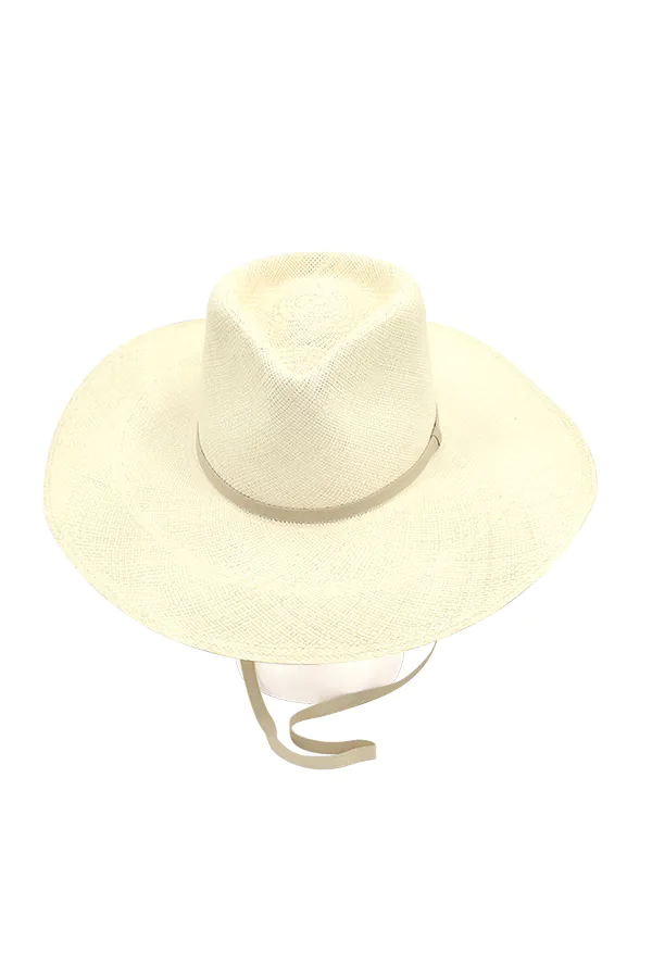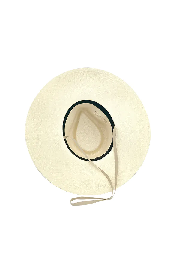 Hand woven Panama hat with a diamond crown and a wide sweeping brim. Designed with an adjustable strap for a secure fit, this new style captures effortless summer glamour while honoring the timeless elegance of Monica Vitti.