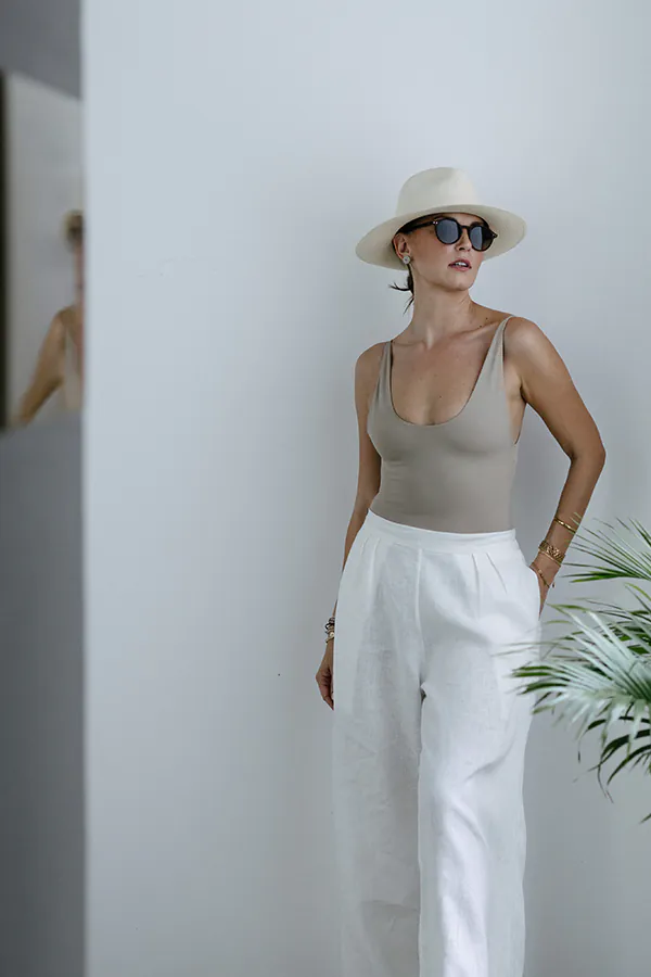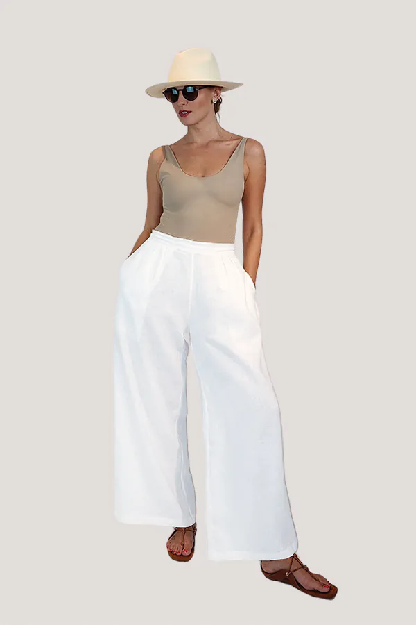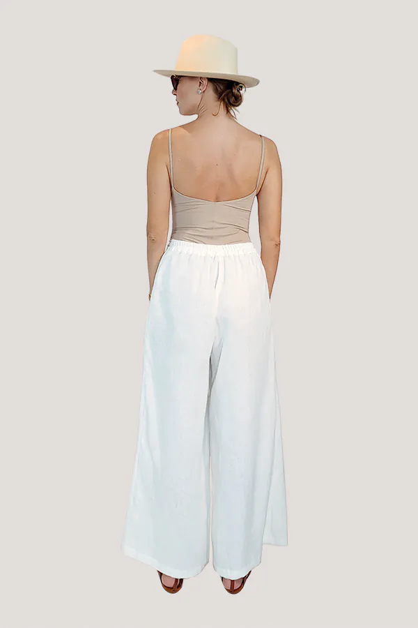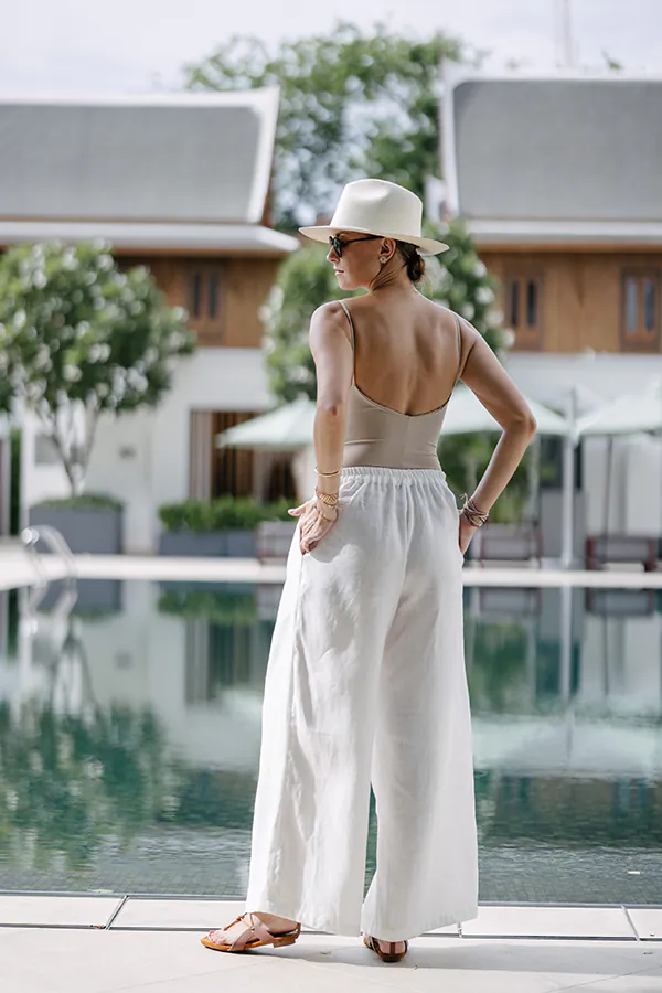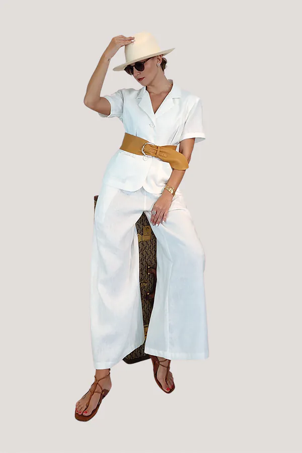 The iconic Palazzo pants strike the perfect balance between stylish and functional. Worn by avant-garde fashionistas in the 1930 and 1940, such as Katherine Hepburn, this classic design has withstood the test of time. The Lilly Pants are cut from pure linen with a pleated high-rise waist and breezy legs. Style yours with a simple tee or the matching Loulou blazer.